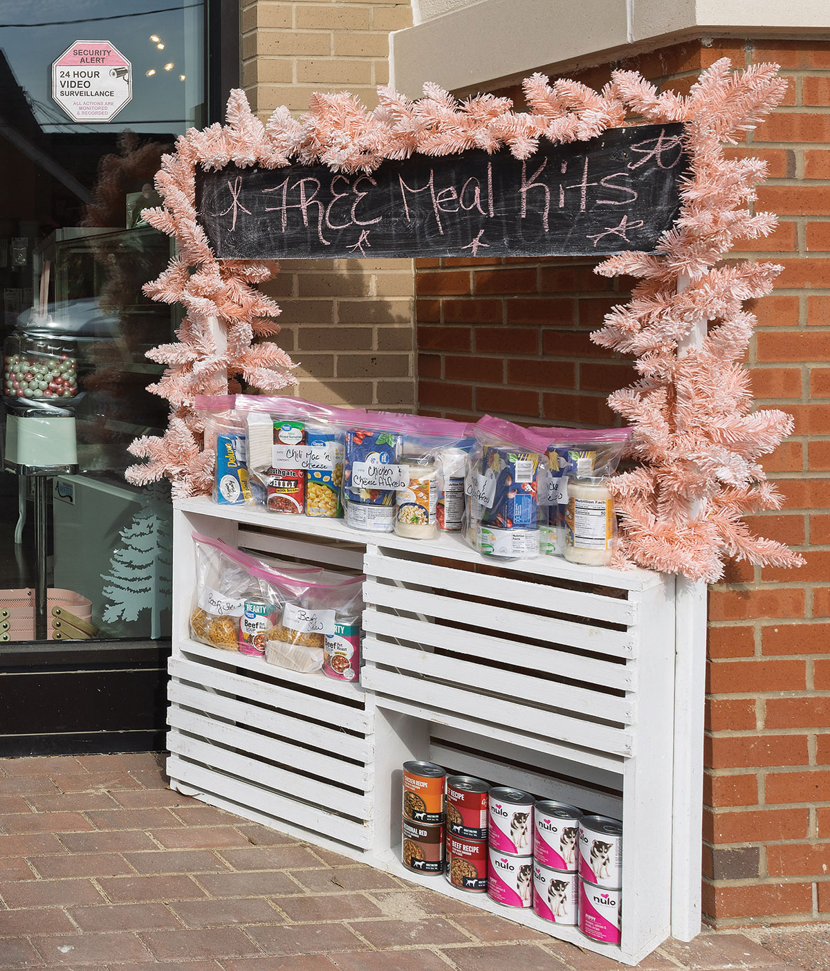 Kits have included chicken, gravy, and potatoes; chili mac ’n’ cheese; beef stew; and chicken and cheese alfredo. Cat and dog food is also available to those who need it.