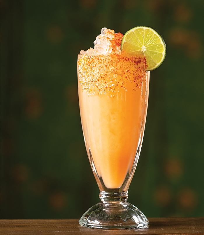 Strain the contents of the shaker over fresh ice into a glass rimmed in Tajin, a chili-lime seasoning. Garnish with a float of Aperol, if desired, and a lime wheel.