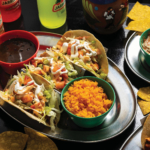 Must-try item: Tacos Campechanos, which features three corn tacos with steak, grilled chicken, and chorizo, all topped with fresh cilantro and onion and served with rice and beans.