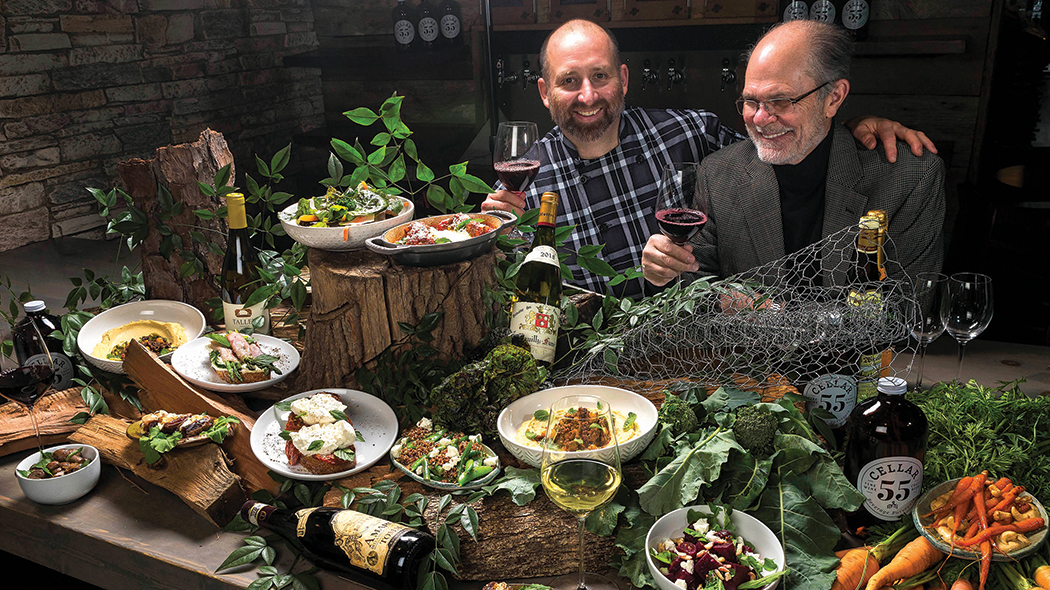 Locally sourced carrots rest atop house-made hummus and cashews. Cellar 55’s selection of premium wines make a perfect pairing.