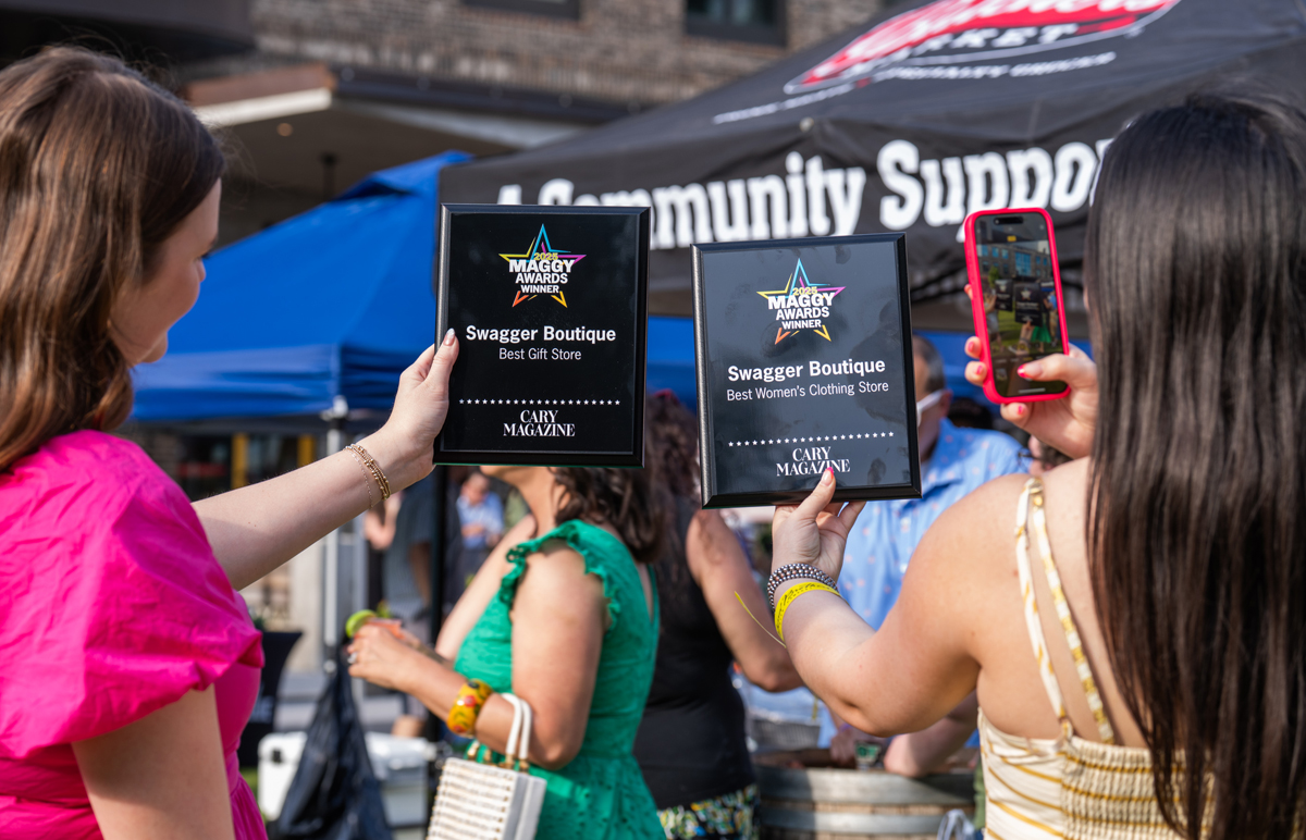 The Maggy Awards recognize the best of Southern Wake as voted on by Main & Broad readers. The annual Maggy Party allows winners and readers to celebrate local greatness together with an evening of food, music, and fun at Fenton in Cary. This year’s party, presented by First Bank, featured food and drinks from more than 20 winners, music by Maverick Rose, a 360-degree video experience by Triangle Twirl, and lots more.