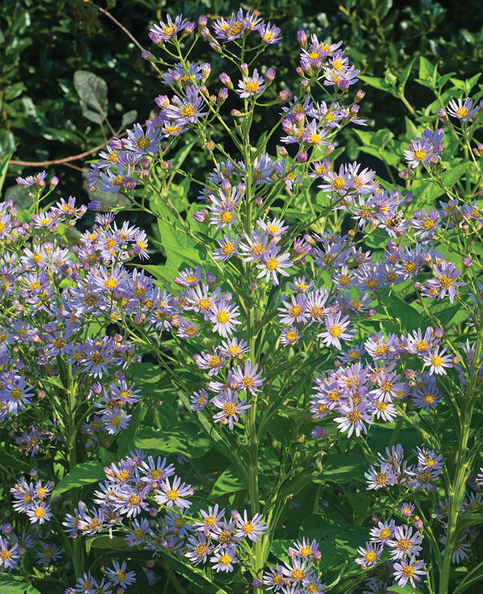 Brought to the States from Central Asia and Japan, the tatarian aster is one of the latest blooming asters, waiting until early fall to launch its galaxy of 1-inch, light purple to bluish stars with sun yellow centers. These flowers are not only pretty, but pretty persistent, lasting for weeks. They are also welcomed fly-ins for bees and butterflies still on the wing as the growing season closes down.