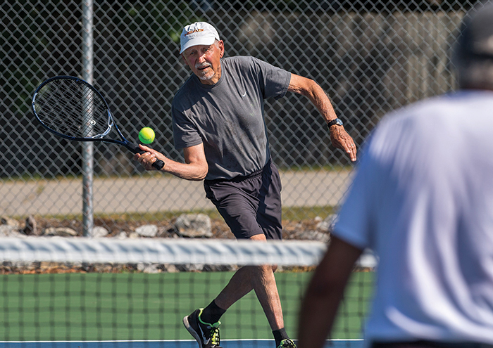 “He’s our inspiration,” says Don Haines, fellow tennis player and friend. “George is consistent in his determination to keep playing, and he plays well, as an opponent and a partner.”
