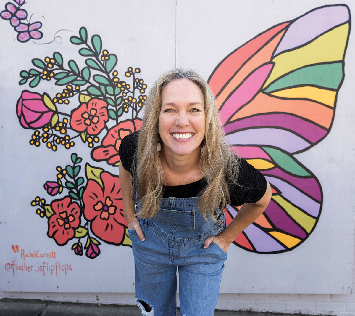Find Rachel’s Butterfly mural in downtown Fuquay-Varina on the side of Original Strength Institute.