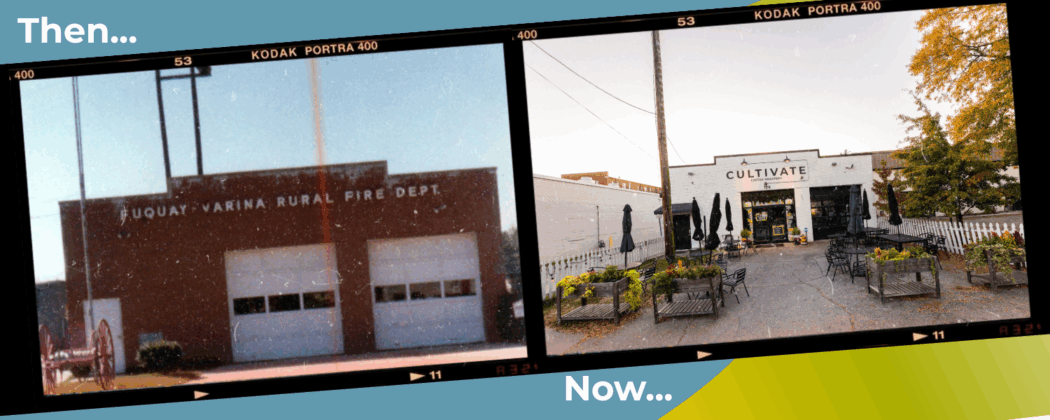 In 1954, the Fuquay-Varina Rural Fire Department was formed under the sponsorship of the Farm Bureau of Fuquay-Varina, expanding coverage to surrounding areas. For 11 years, equipment was stored in various locations until 1965, when a dedicated two-bay fire station was completed at 128 S. Fuquay Avenue — currently the location of Cultivate Coffee Roasters.